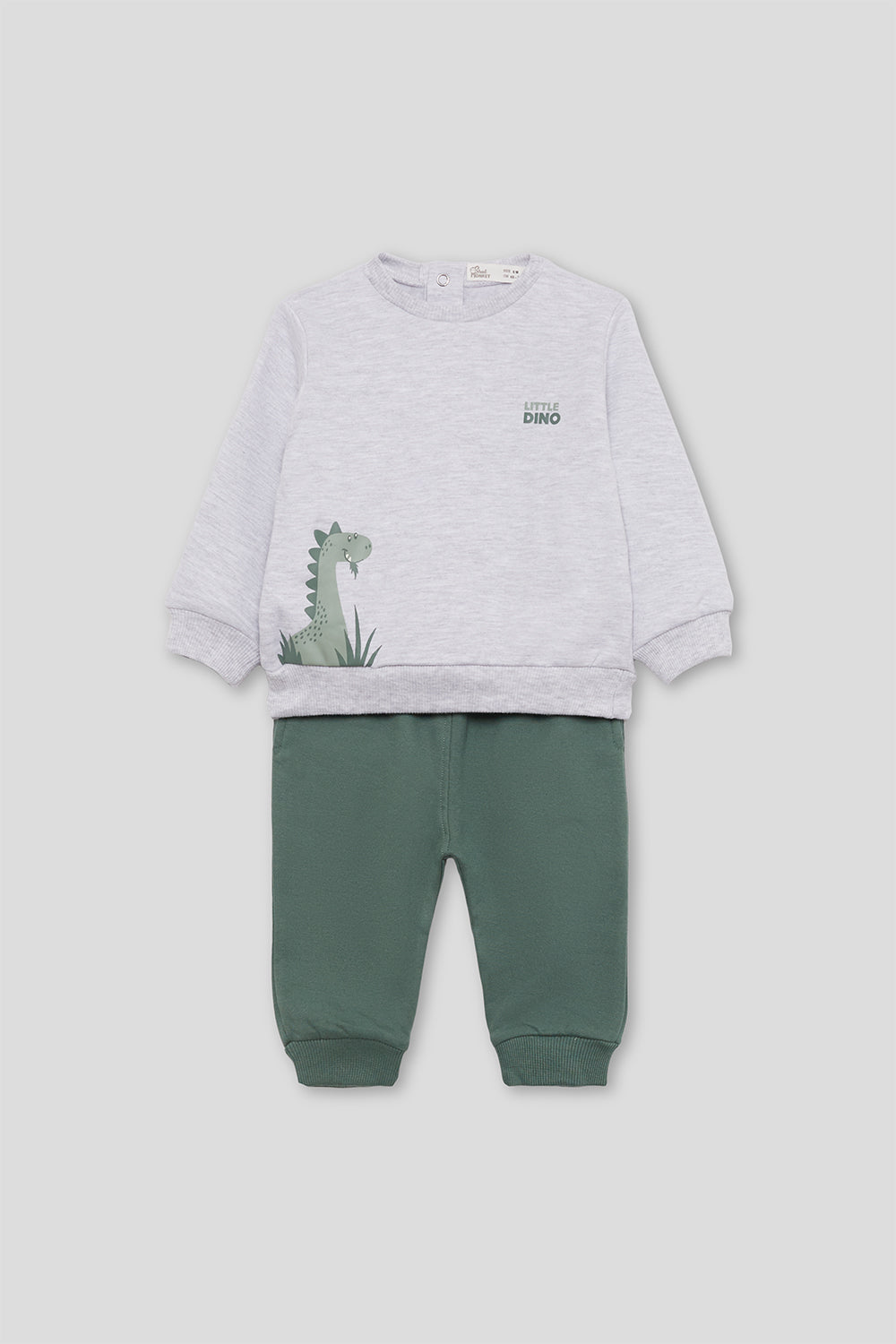 Este chándal de dos piezas combina una sudadera con estampado de dinosaurio y un pantalón deportivo cómodo, ideal para que los niños se muevan con total libertad. Su diseño divertido y moderno atraerá a los pequeños aventureros mientras mantienen una sensación de confort durante todo el día. Perfecto para actividades al aire libre o para el día a día, este conjunto ofrece calidad y estilo en cada momento.