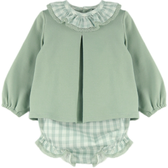 Este jesusito de dos piezas en verde agua con estampado vichy de la marca Baby Ferr combina estilo y comodidad para tu niña. Con tejidos suaves y transpirables, ofrece libertad de movimiento y frescura durante todo el día. Su diseño delicado y elegante lo convierte en una opción perfecta para ocasiones especiales o el día a día, asegurando que tu pequeña luzca encantadora y se sienta cómoda al mismo tiempo.