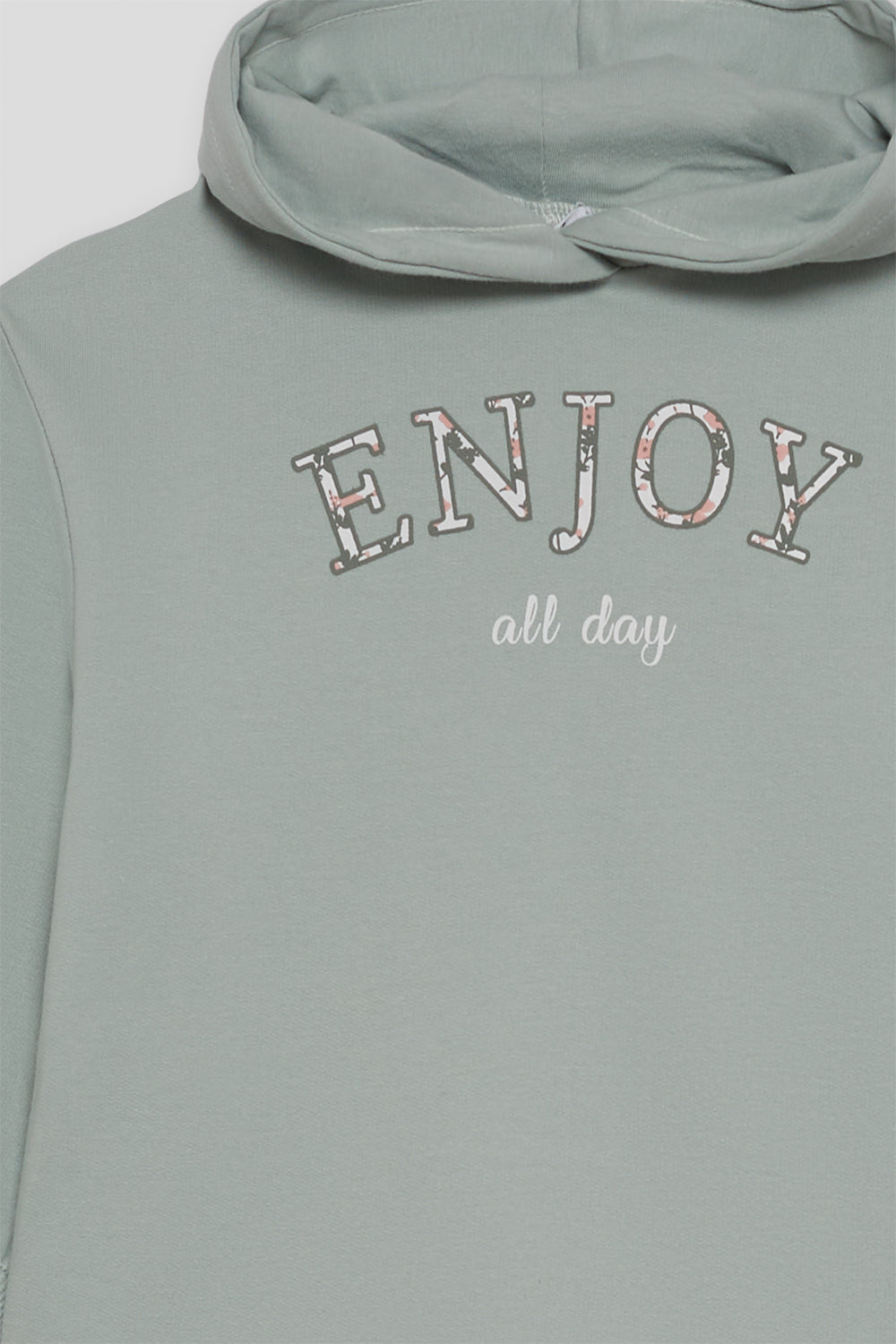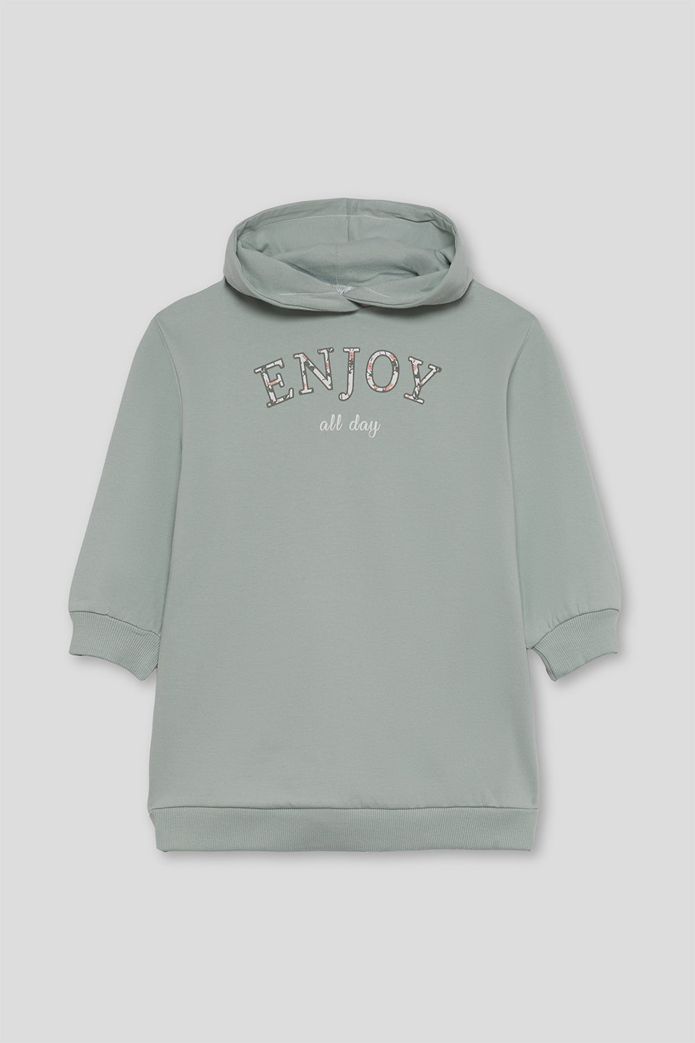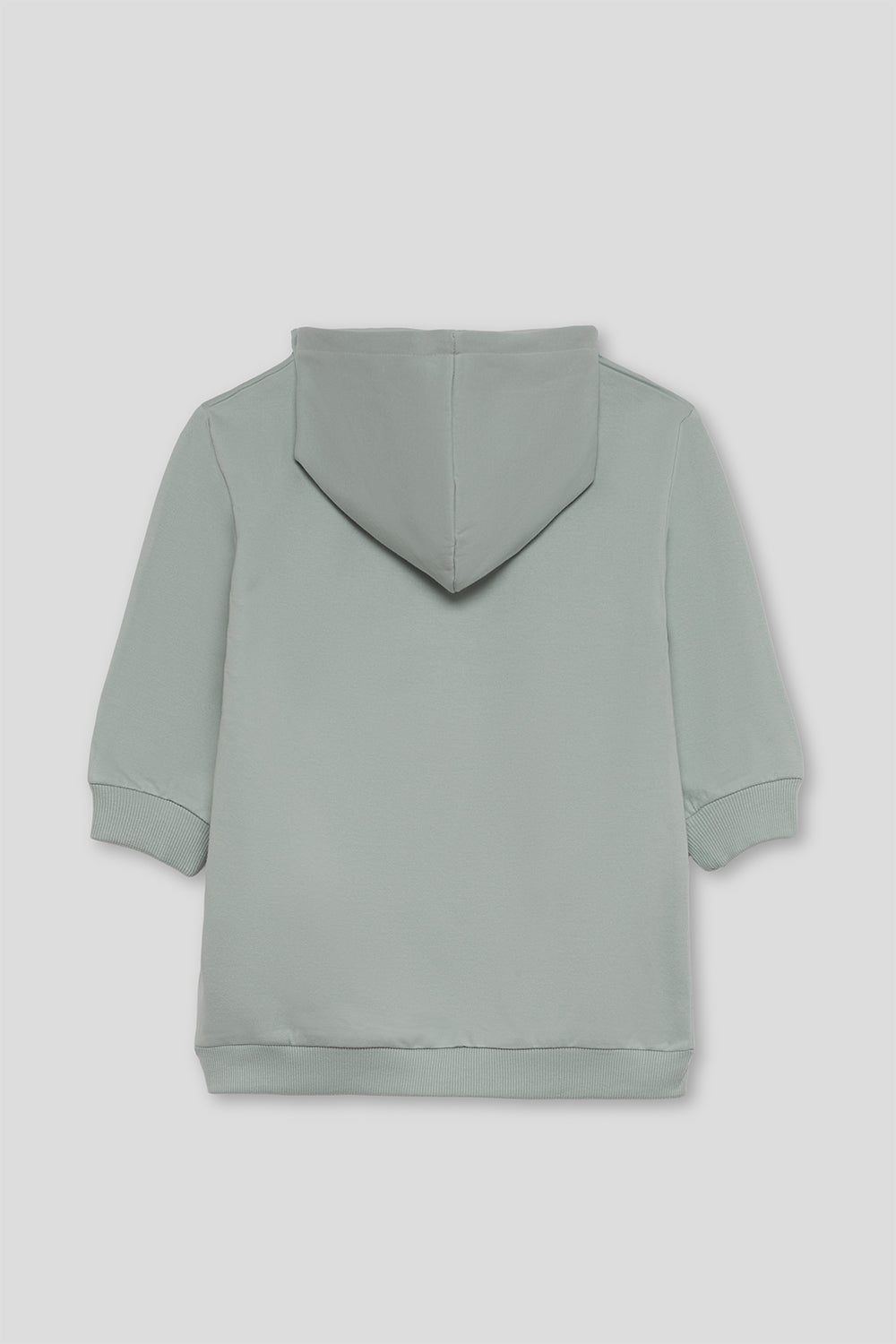 Vestido largo tipo sudadera en tonalidad verde agua que combina comodidad y estilo. Confeccionado con tejido suave y acogedor, cuenta con capucha práctica y un corte relajado perfecto para el día a día. Ideal para crear looks casuales sin renunciar a la elegancia, este diseño versátil se adapta a cualquier ocasión, desde paseos en familia hasta momentos de descanso en casa. Una prenda imprescindible que tus hijos querrán ponerse una y otra vez.
